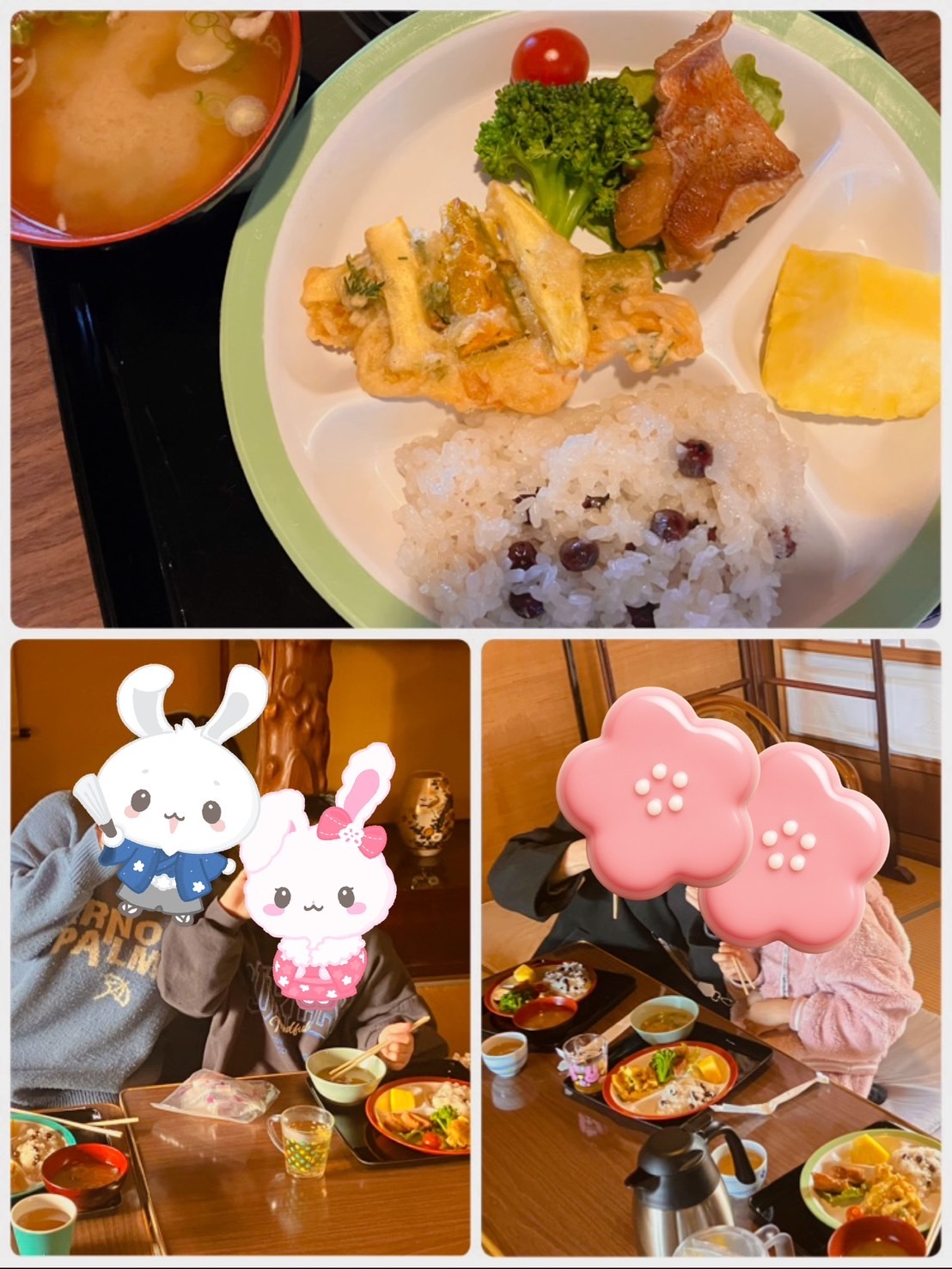 メニューは赤魚の煮つけやお野菜のかき揚げ、お赤飯にフルーツなど。